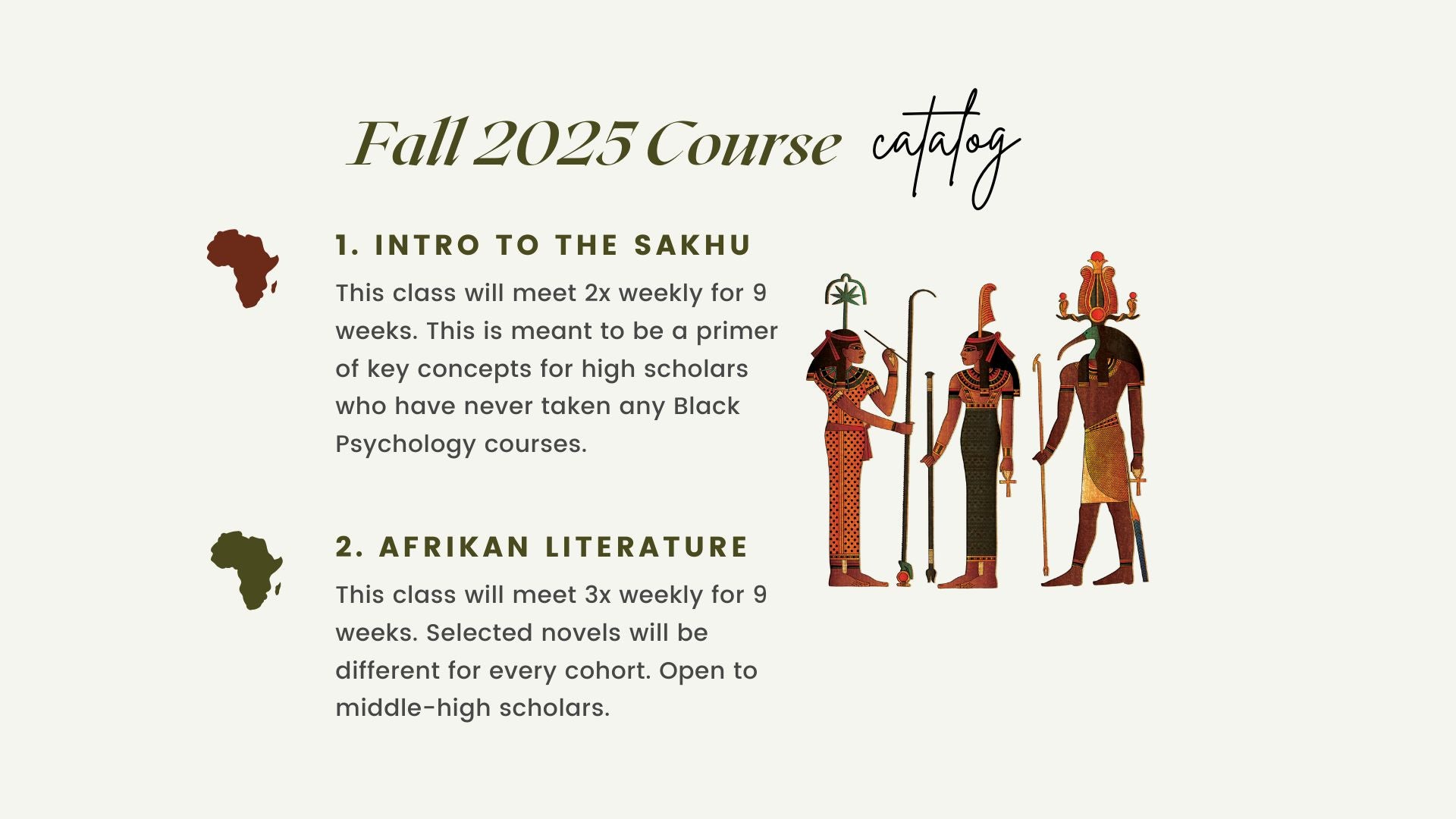 Return of Maat creates courses through an African Psychology framework. Classes are not just lessons; they are experiences that challenge and reshape the mindset of our students. We offer Advanced and Mainstream courses in Black Psychology, Literature, Ourstory (History), Culture and Arts, and Writing. Families have the option to choose from 9-Week Live Courses, Semester-Long Live Courses, Year-Long Live Courses, and Self-Paced Anytime, Anywhere Courses. Scholars will walk away with practical skills and work that uplifts their communities.